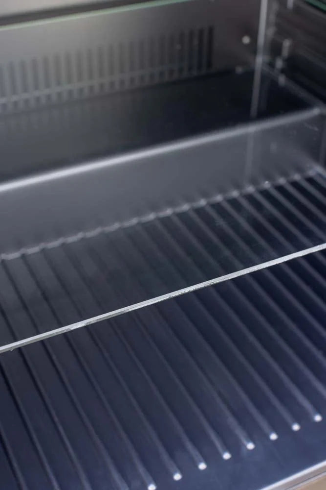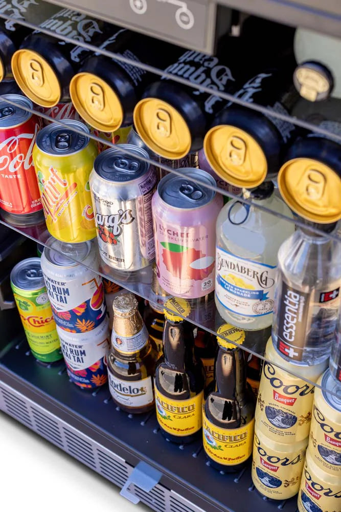 The 24" Outdoor Rated Glass Door Refrigerator offers 5.01 cubic feet of storage, a #304 stainless steel door frame with a triple-glazed tinted glass, interior LED lighting, a locking door, and much more! With a sleek black interior & glass shelving, this refrigerator will help keep your food fresh, wine chilled, and beer cold, bringing the function of your indoor refrigeration outside to join the party.
