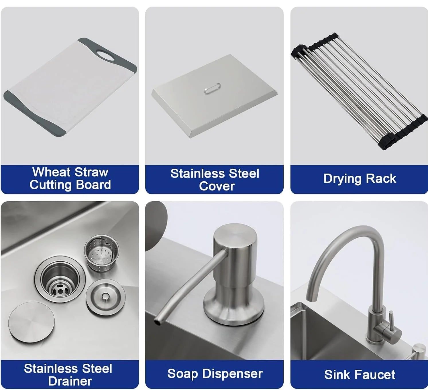 Elevate your outdoor hosting with the Prep Pro Workstation. This is the definitive upgrade for the Modern Entertainer, transforming your grilling area into a professional-grade prep zone. Crafted from premium 16-Gauge 304 Stainless Steel, this drop-in sink offers superior heat and rust resistance, providing a sleek, modern, and enduring extension of your 360 Grill.