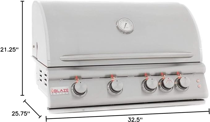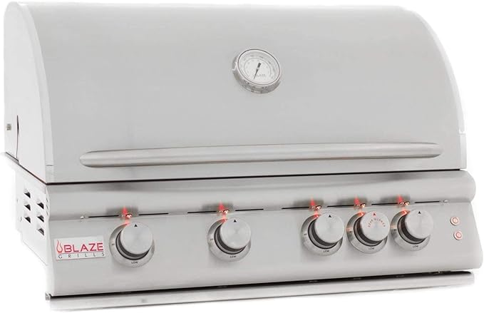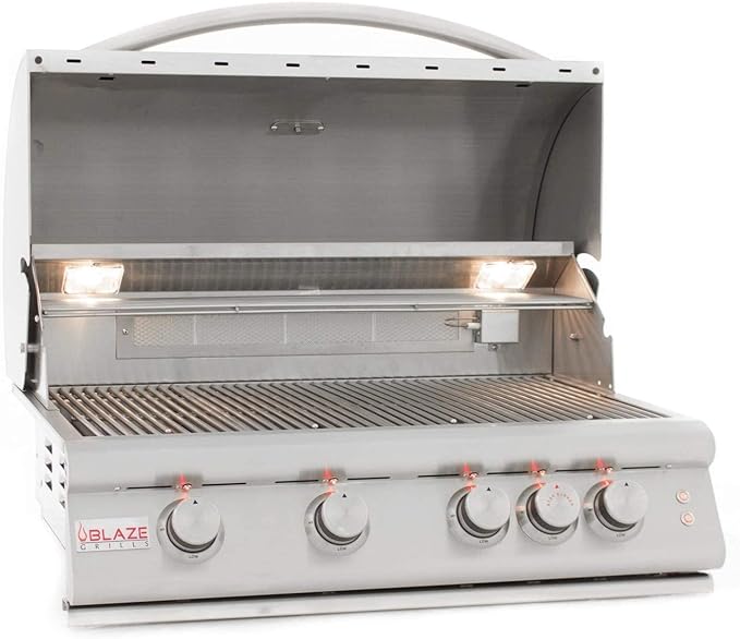 The Marine Grade Stainless Steel Built-In Gas Grill with Lights by Blaze provides a high performing luxury grill at an affordable price. The complete marine grade 316 stainless steel construction throughout the grill body ensures a long lasting and durable appliance while the impressive cast stainless steel burners offer a commercial quality burner that's normally found on more expensive grills. The integrated heat zone separators allow you to create distinct grilling zones for direct/indirect grilling that's perfect for everything from steak to ribs while the perforated flame stabilizing grids do a great job to reduce flare-ups. The included infrared rear burner is rated for 10,000 BTU to provide a wealth of heat for low, slow rotisserie cooking using the optional rotisserie kit (not included), while the integrated interior grill lights illuminate the grill surface for day or night grilling. This grill has been designed for use with propane gas.