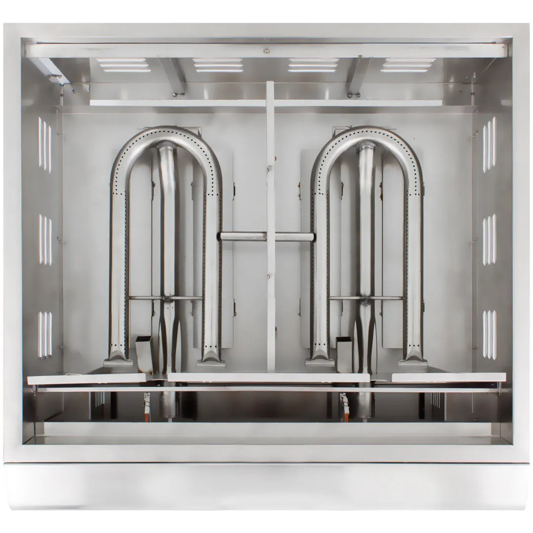 Expand your outdoor cooking into new realms with the Blaze built-in gas griddle Teppanyaki. This Blaze built-in gas griddle is equipped with two commercial quality, 304 stainless steel U-shaped burners that each deliver 18,000 BTUs of cooking power for a total of 36,000 BTUs across the 495 square inch cooking surface. Push and turn flame-thrower primary ignition, backup flash tube secondary ignition and cross tubes ensure a steady, reliable flame with every start. A full-width grease trough with a hole in the center directs grease down to the drip tray below for easy cleaning. This ETL certified gas griddle is constructed entirely with heavy-duty, 304 grade stainless steel and includes a stainless steel lid to cover the griddle plate when not in use. Blaze gas griddles have a lifetime warranty that warrants against any defects in the manufacturing and workmanship of the main burners, griddle plate, body, and control valves. While the ignition system and electronics are covered for one (1) year after the date of purchase. Product must be registered within thirty days for the warranty to apply.