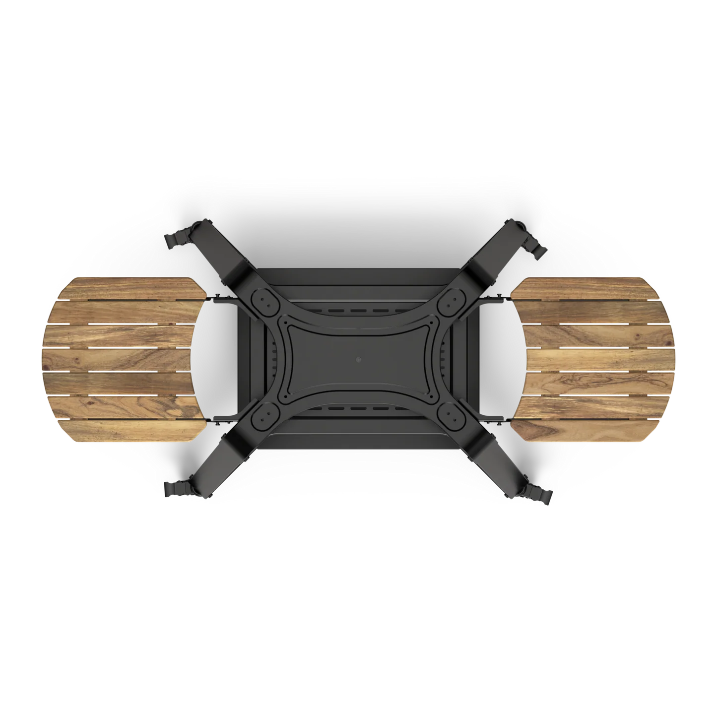 - Two acacia shelves for accessories and wood storage