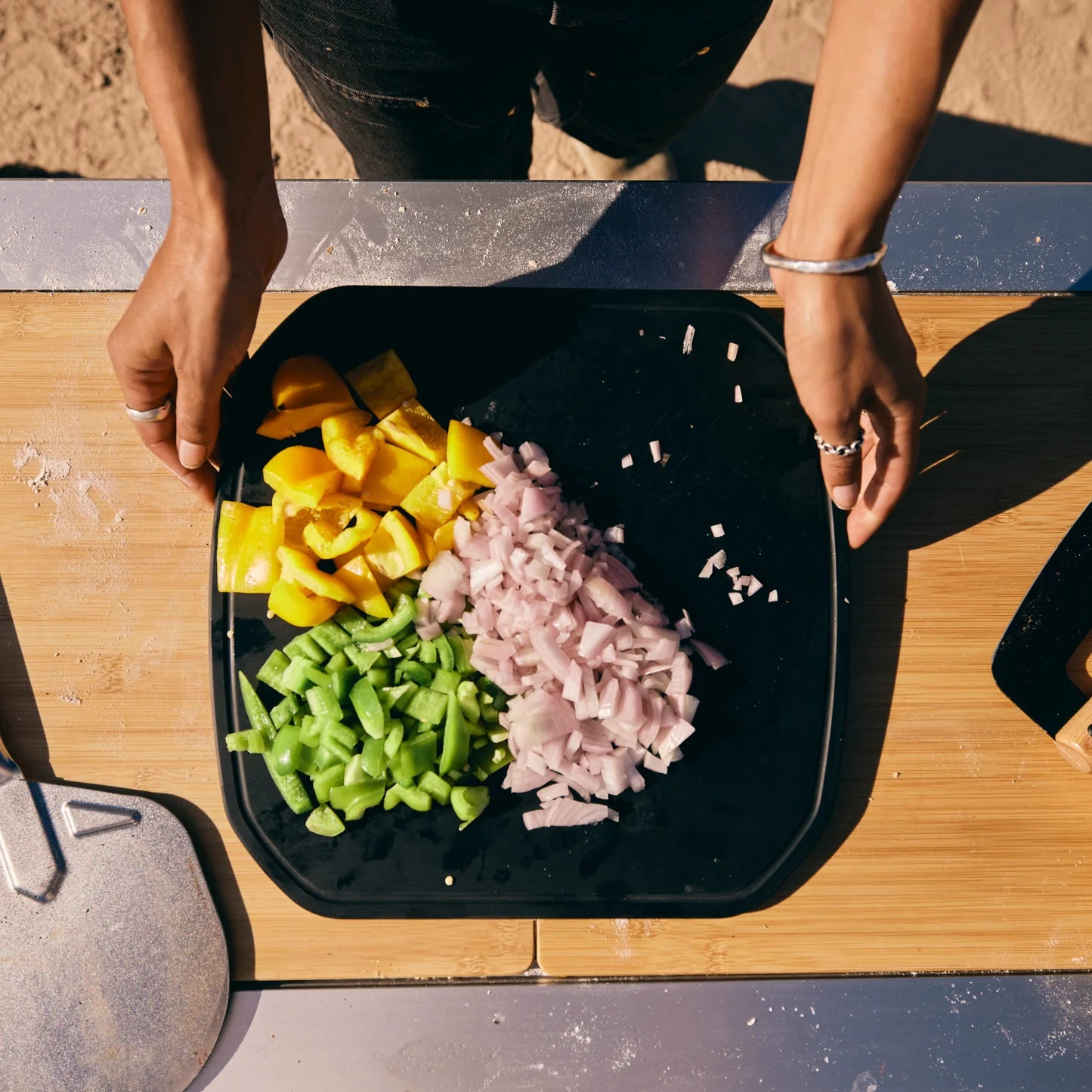 Premium cutting board and pizza server designed for your remote outdoor cooking. Tread Roof Rack Server, fits seamlessly into the Tread Roof Rack – made of durable fibre board – provides a prep surface anywhere you cook. Cut up ingredients, slice and serve pizza, use on its own or as an extra server with your Tread Roof Rack.