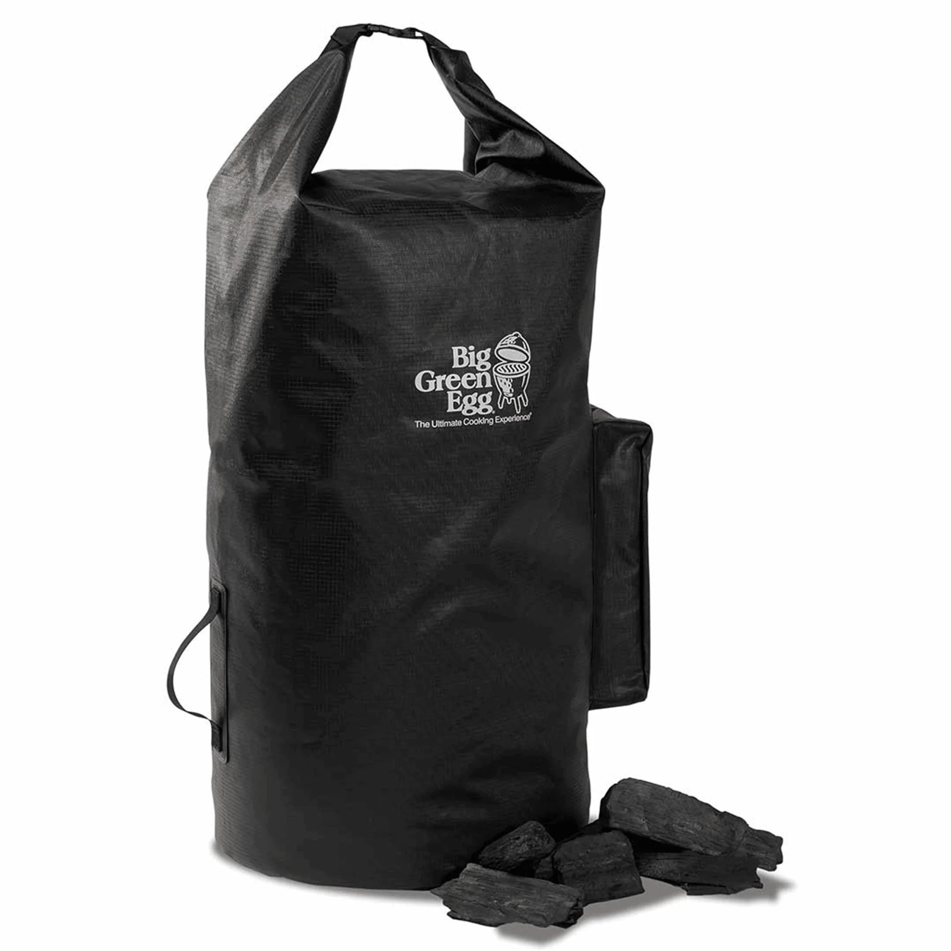 Keep your charcoal dry and ready with our all-weather storage bag. This robust polyester guardian shields up to 20 lbs (9 kg) of charcoal from the elements, ensuring your fuel stays pristine. The roll-top closure seals out moisture, while an oversized, water-resistant pocket safeguards your essential grilling tools. Seamlessly integrating with your egg system, this bag stands ready for any outdoor cooking adventure.